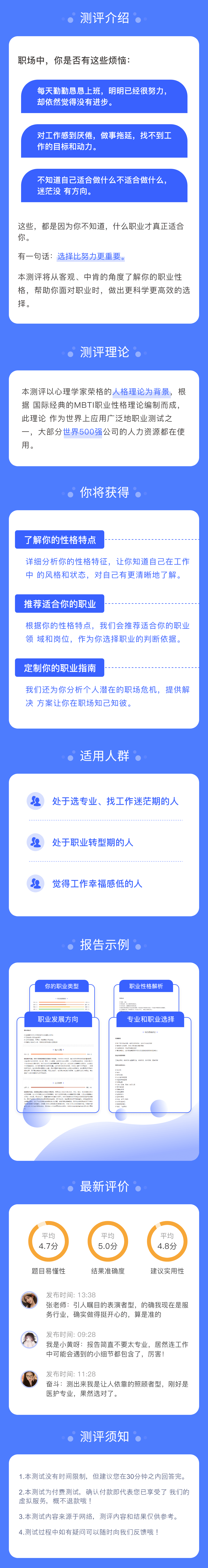 MBTI是国际上广泛使用的人才甄别工具,能分析你的性格与相关职业的匹配程度。